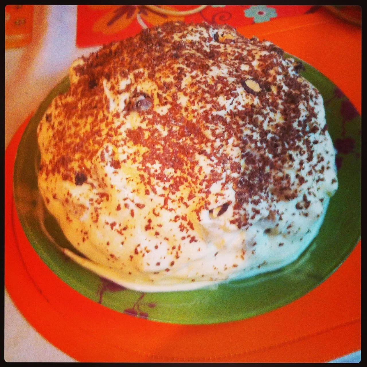 ШАГ 11 Облить торт остатками крема (крем жидкий и течет, поэтому я это делала в раковине).
