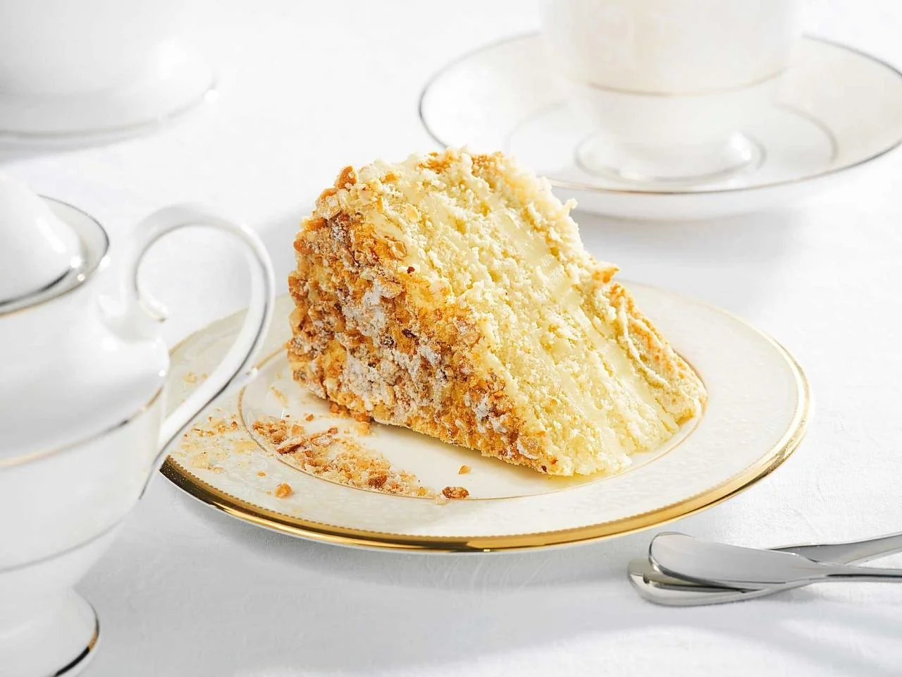 ШАГ 7 Арахис обжарить в духовке при температуре 180 градусов в течение четверти часа. Очистить орехи и порубить в крупную крошку. Обсыпать торт орехами и поставить в холодильник на 2–3 часа. Перед подачей посыпать торт сахарной пудрой.