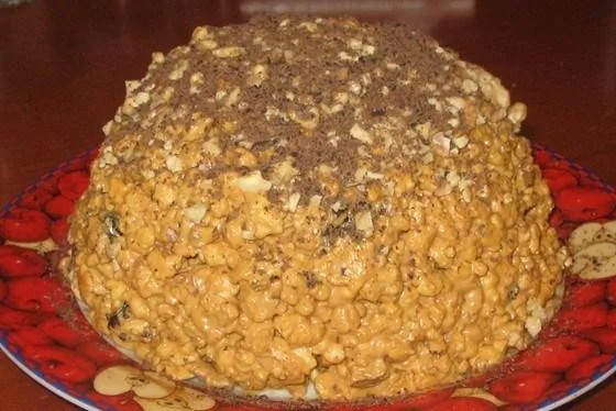 ШАГ 11 В измельченный корж небольшими порциями ввести крем. Выложить на блюдо или на широкую тарелку в виде горки. Поставить в холодильник для пропитки на несколько часов (лучше на ночь).