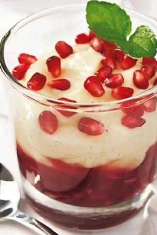 Гранатовый сок Зерна граната Лимонный сок Молоко Сливки 30%-ные Ванильный стручок Яйцо куриное Яичный желток Сахар Кукурузный крахмал Сливочное масло Выпечка и десерты Итальянская кухня