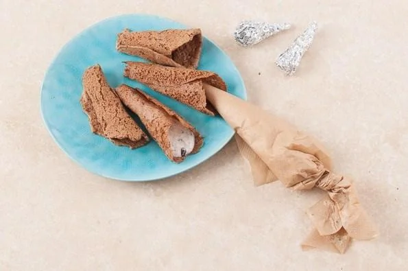 ШАГ 6 Перелейте крем в кондитерский мешок или кулек из пергамента; наполните остывшие трубочки кремом.