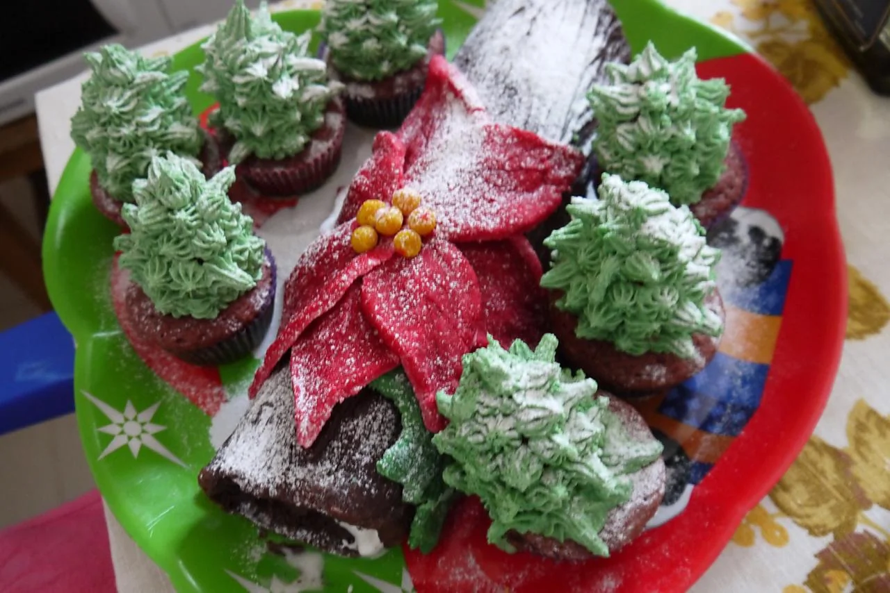Ингредиенты для приготовления Рождественское полено и кексы-елочки: