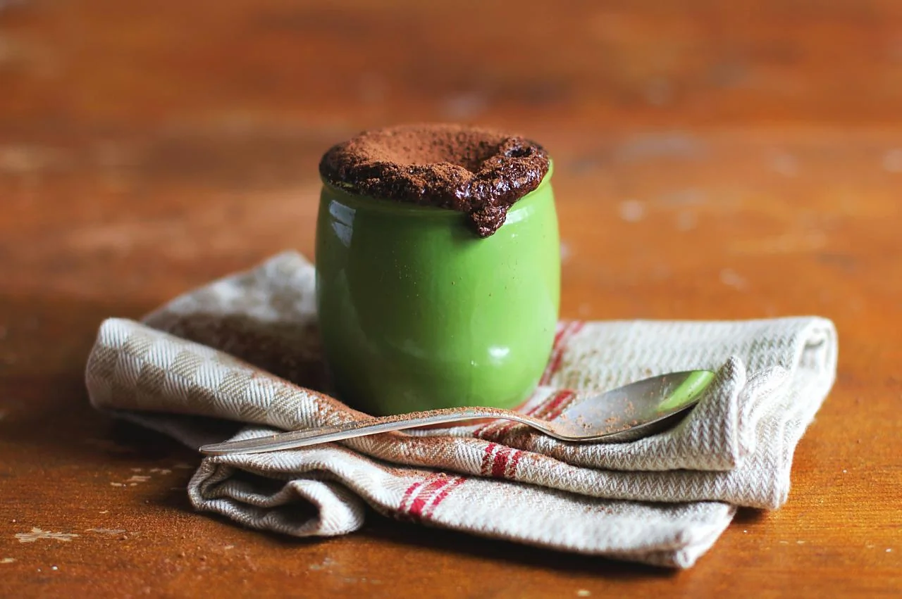 ШАГ 4 Разлить «тесто» по формочкам, выпекать 15 минут. Остудить суфле в закрытой духовке 10 минут, подавать, посыпав какао.