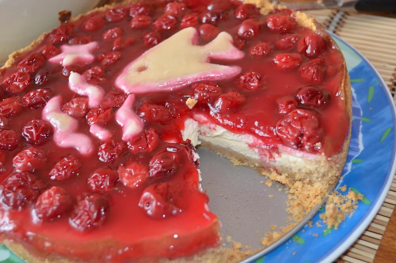 ШАГ 7 Поставить форму в духовку на 50–60 минут. Не открывать духовку во время приготовления! После выпечки приоткрыть дверцу духовки и оставить чизкейк остывать примерно на 20 минут. После запекания вы можете украсить чизкейк засахаренными дольками лимона, вареньем, ягодами.