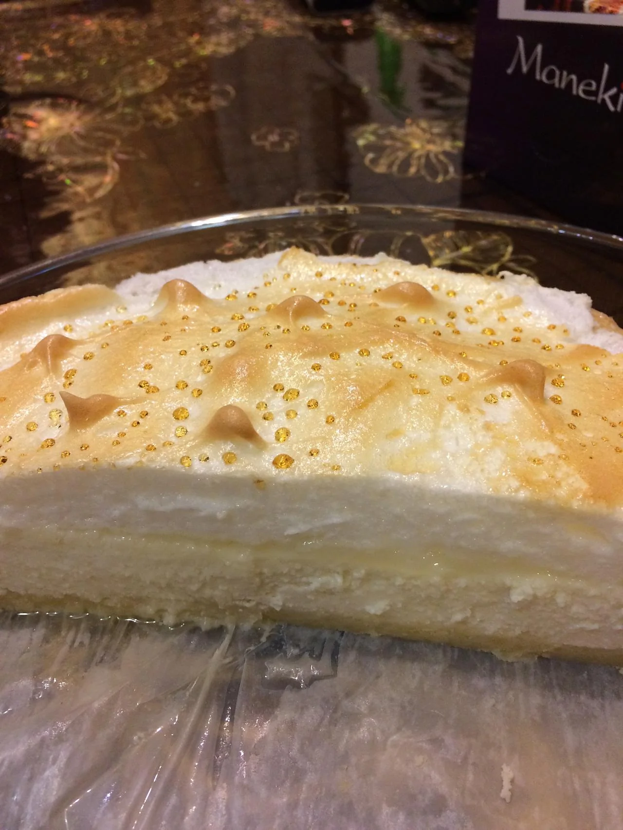 ШАГ 14 Сверху творога выложить белковый крем, также аккуратно распределить его по всей площади.