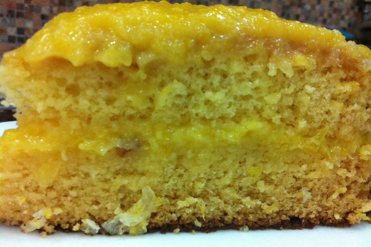 ШАГ 4 Получившимся кремом промазать нижний корж, поместить на него верхний и верхний также щедро смазать цитрусовым кремом.
