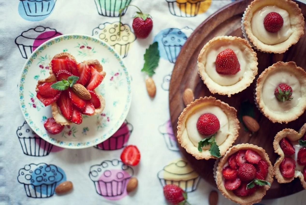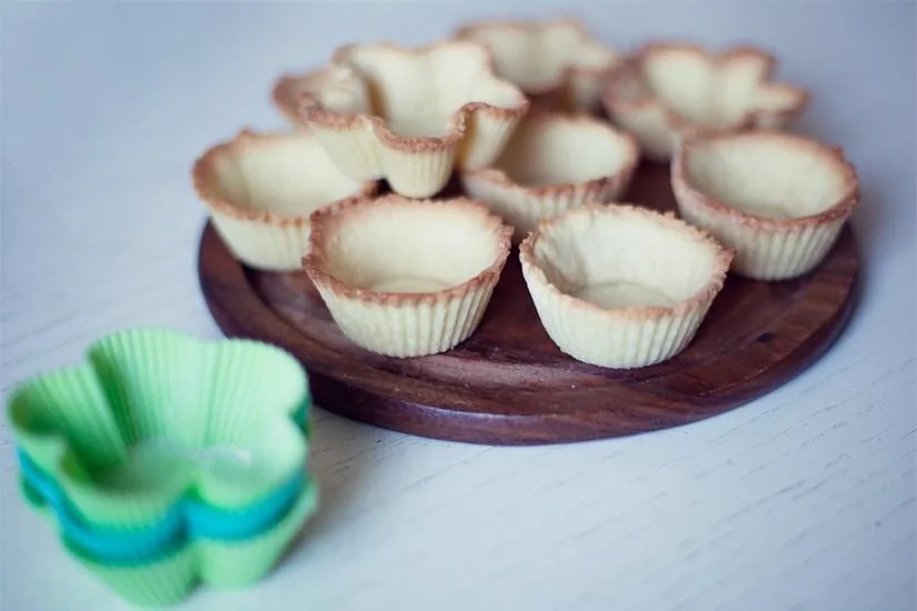 ШАГ 5 Выпекаем в разогретой до 180 градусов духовке до золотистого цвета, примерно минут 10. Даем корзиночкам слегка остыть и освобождаем от формочек. После полного остывания наполняем основу кремом и украшаем клубникой или другой любой ягодкой.