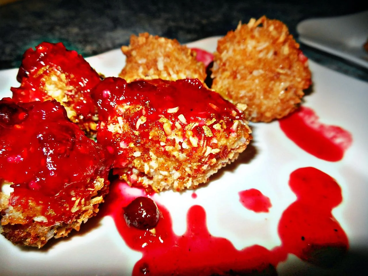 ШАГ 3 Складываем все порции мороженного на охлажденную тарелку и снова отправляем в морозилку для глубокой заморозки. Примерно через полчаса выполняем последний шаг — жарим мороженое во фритюре.