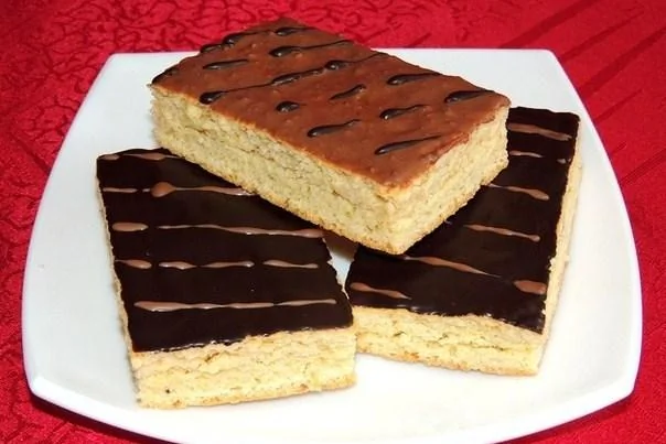 ШАГ 7 Готовый корж нарезать на прямоугольники.