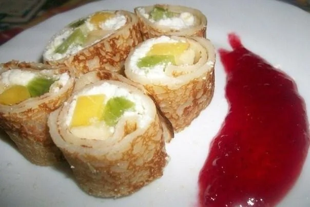 Ингредиенты для приготовления Роллы с фруктами и творогом: