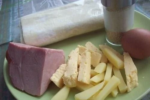 Ингредиенты для приготовления Слоеные булочки с сыром и мясом: