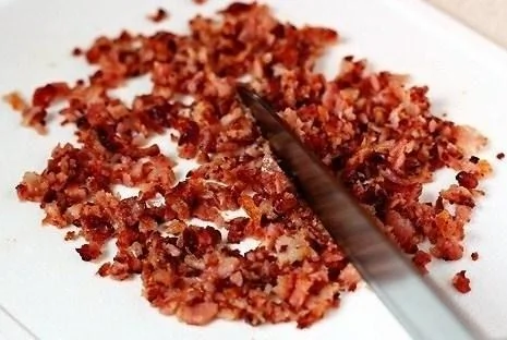 ШАГ 2 Затем порубите готовый бекон на кусочки.