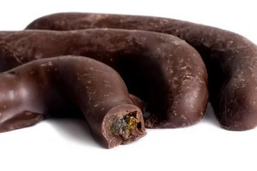 ШАГ 4 Топим шоколад на водяной бане до полного растворения. Окунаем в него цукаты, выкладываем на пергамент и ждем, когда шоколад снова застынет.