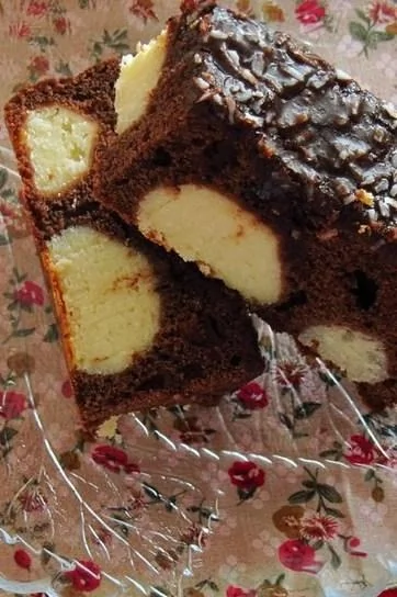 ШАГ 3 Форму для выпечки смазать маслом и присыпать мукой. Выложить на дно формы шарики из творожной массы на небольшом расстоянии друг от друга. Сверху распределить шоколадное тесто.