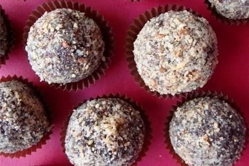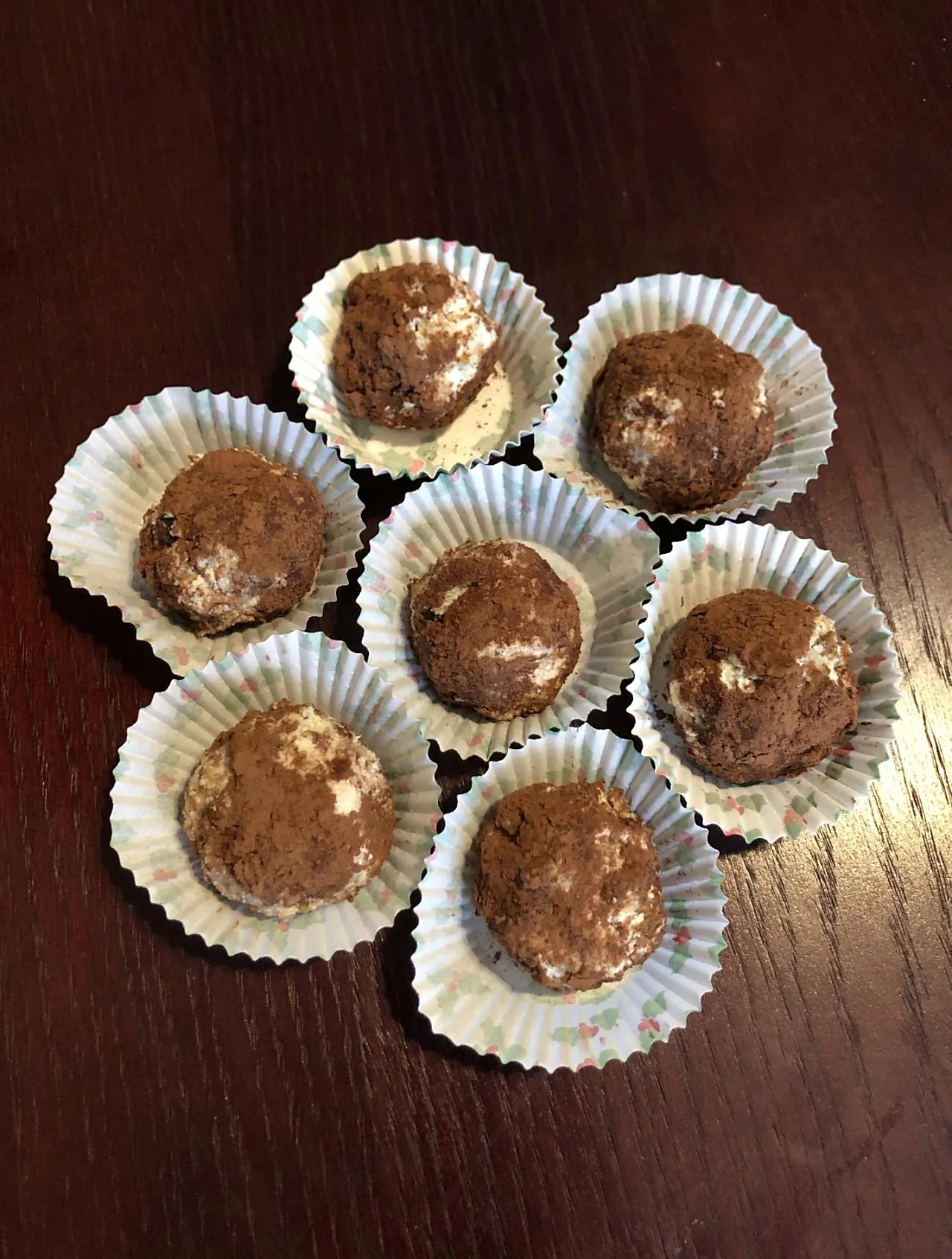 ШАГ 2 Сформировать шарики, обвалять в какао, а можно — в кокосовой стружке или в овсяных хлопьях.