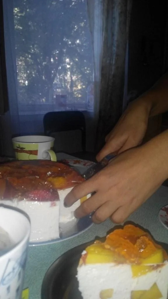 ШАГ 4 Отправляем в холодильник (на 1–2 часа). Достать, разрезать на порционные куски и сервировать фруктами.