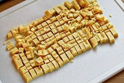ШАГ 2 Возьмите белый шоколад и разрежьте его на мелкие кусочки.