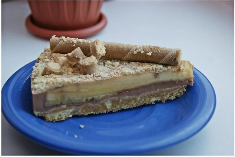 ШАГ 9 Бананы нарезать, как душе угодно, выложить на основу.