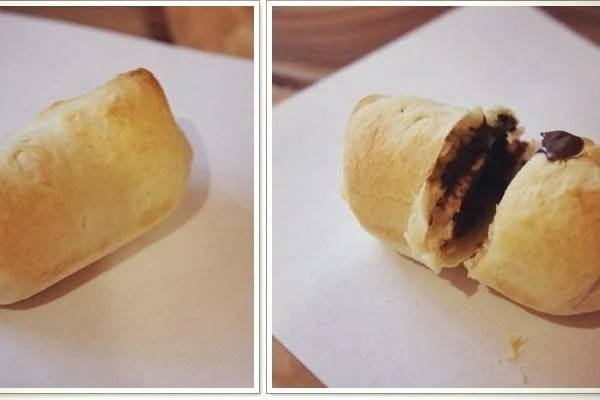 ШАГ 4 Заворачиваем шоколадку в тесто, в несколько слоев. Типа рулета. хорошо скрепляем края.