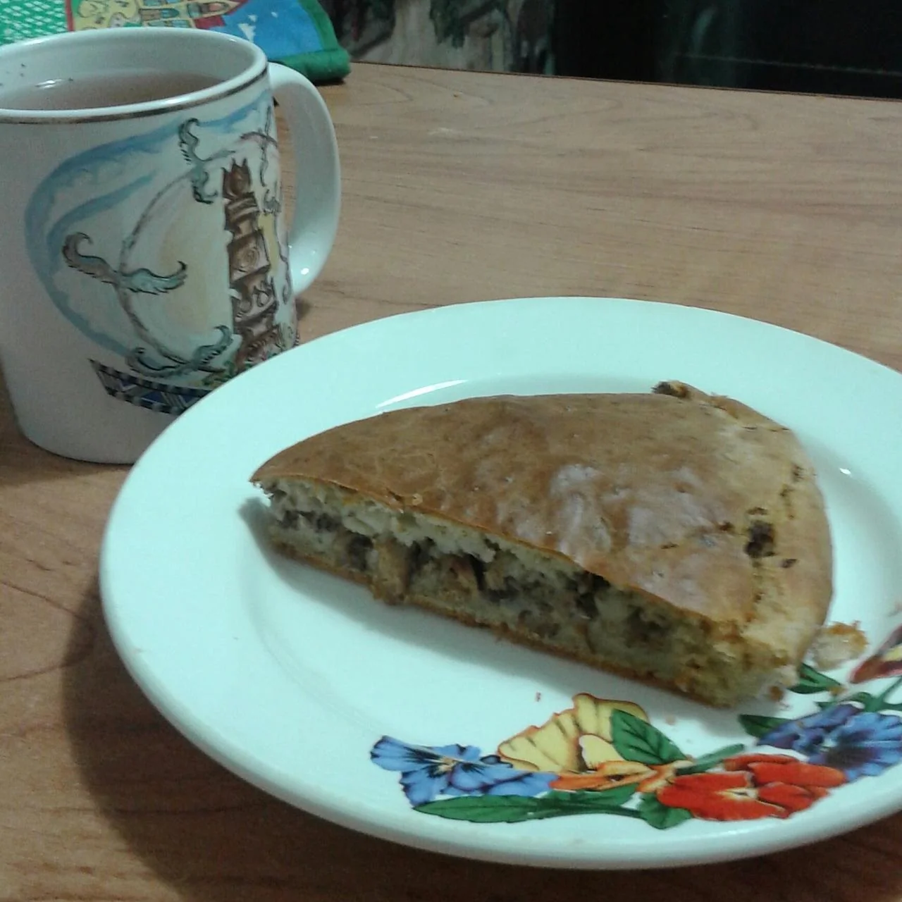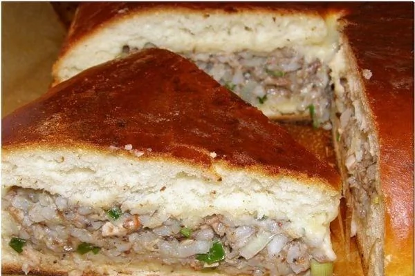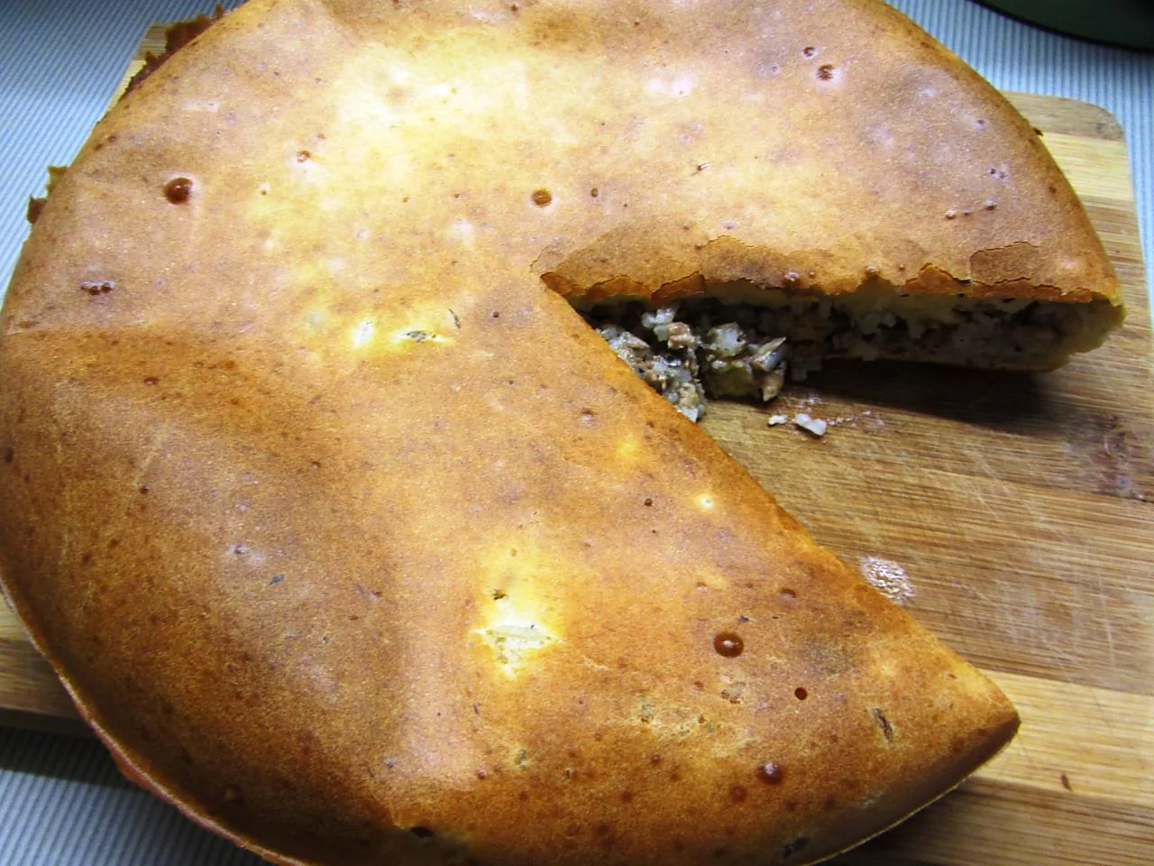 ШАГ 1 В кефир добавить майонез. Яйца отдельно хорошо взбить и влить в смесь, добавить муку. Тесто должно получиться как густая сметана. Дать постоять 30 минут, затем добавить соду. Горбушу мелко разделить вилкой и обжарить с луком на сковороде 5–7 минут.