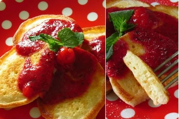 Оладьи с клубнично-мятным соусом