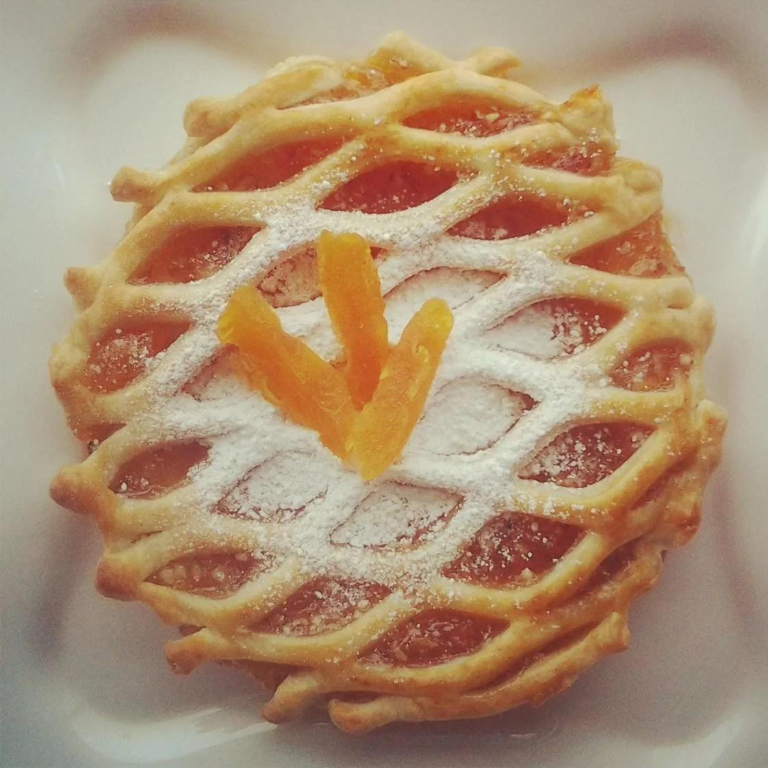 Пирог из слоеного теста с абрикосовым джемом, курагой и миндалем