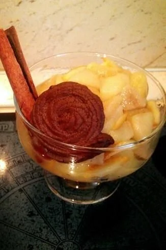 Яблочно-грушевое компоте с апельсинами и шоколадным печеньем