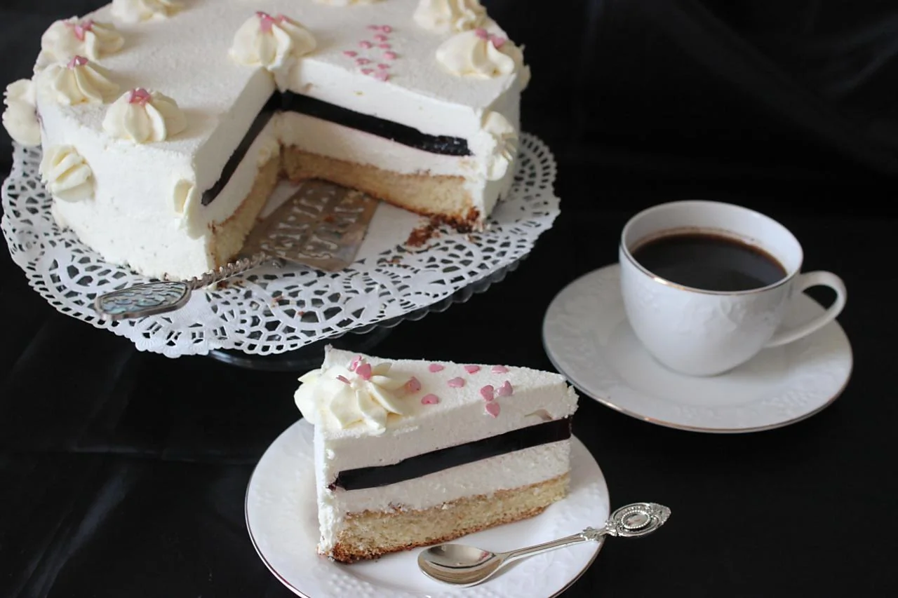 ШАГ 5 Утром холодный торт обрызгала спрей-велюром. Украсить по желанию — у меня сливки и посыпка.