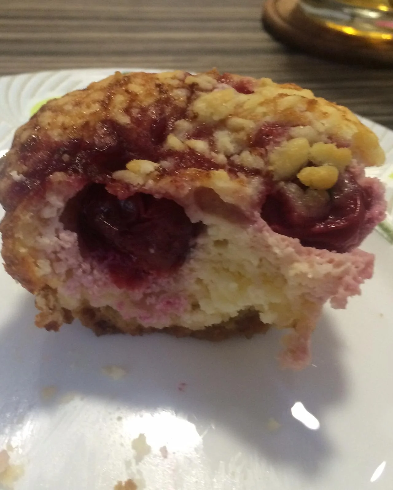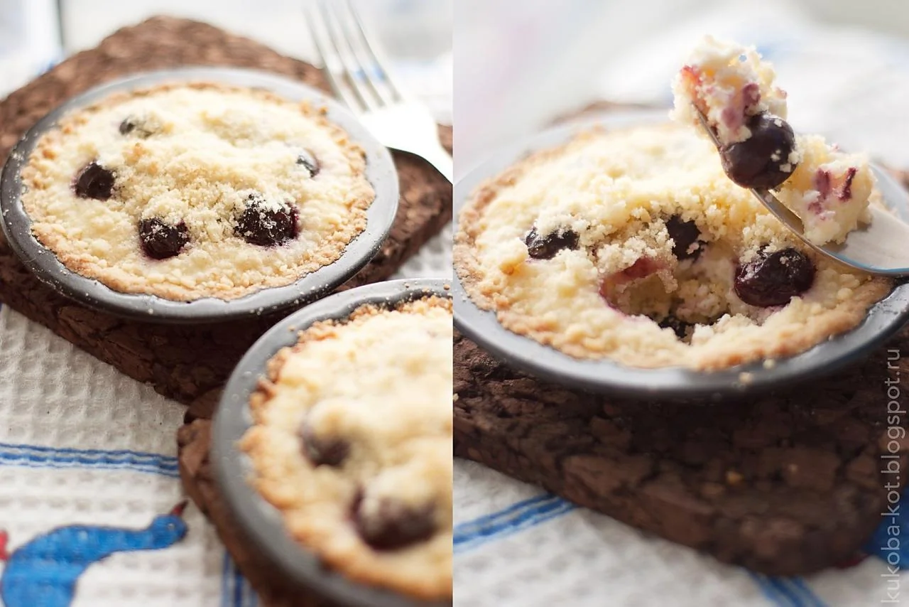 Песочный мини-пирог с творожной начинкой и вишней