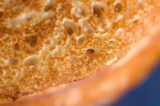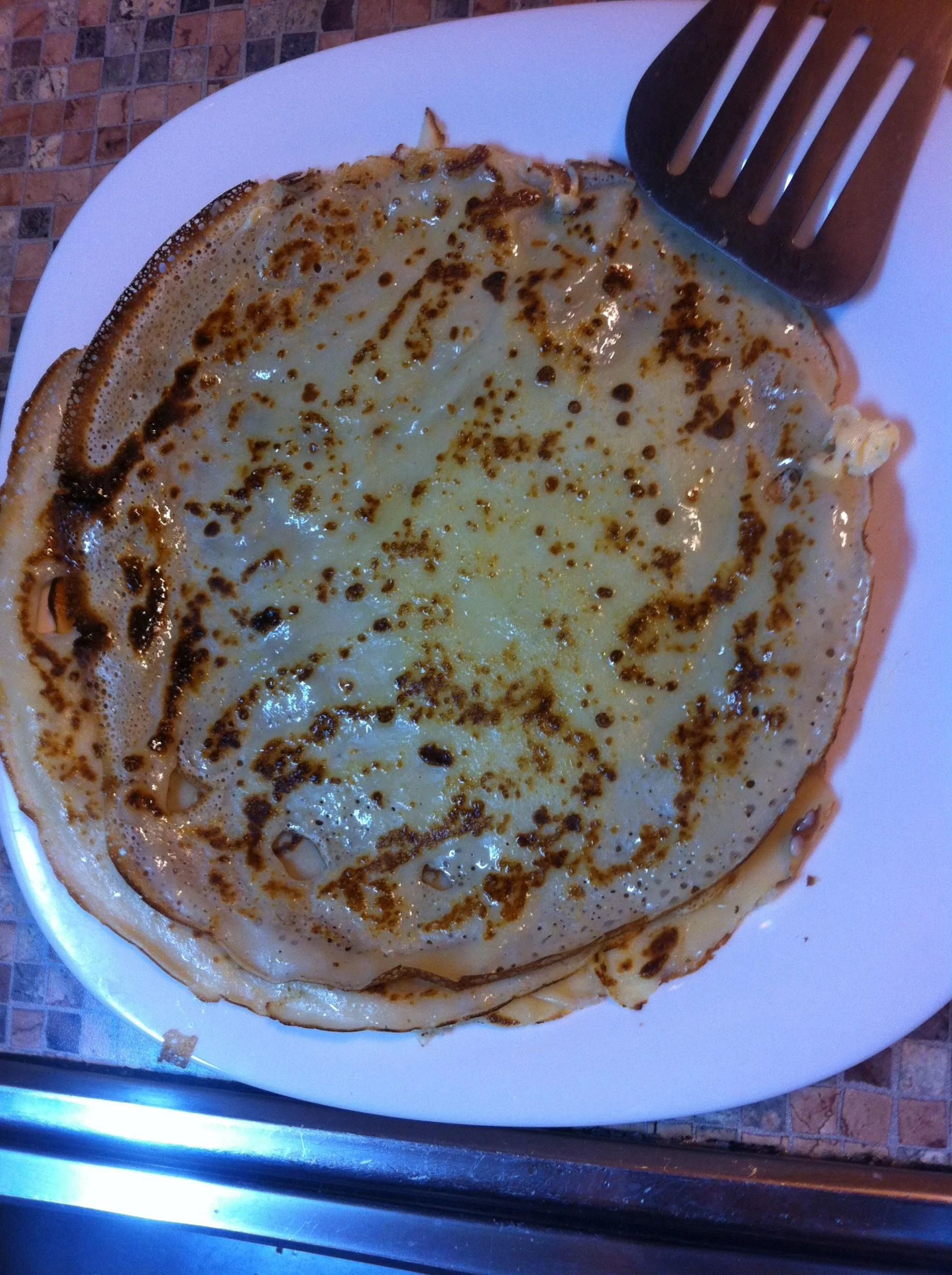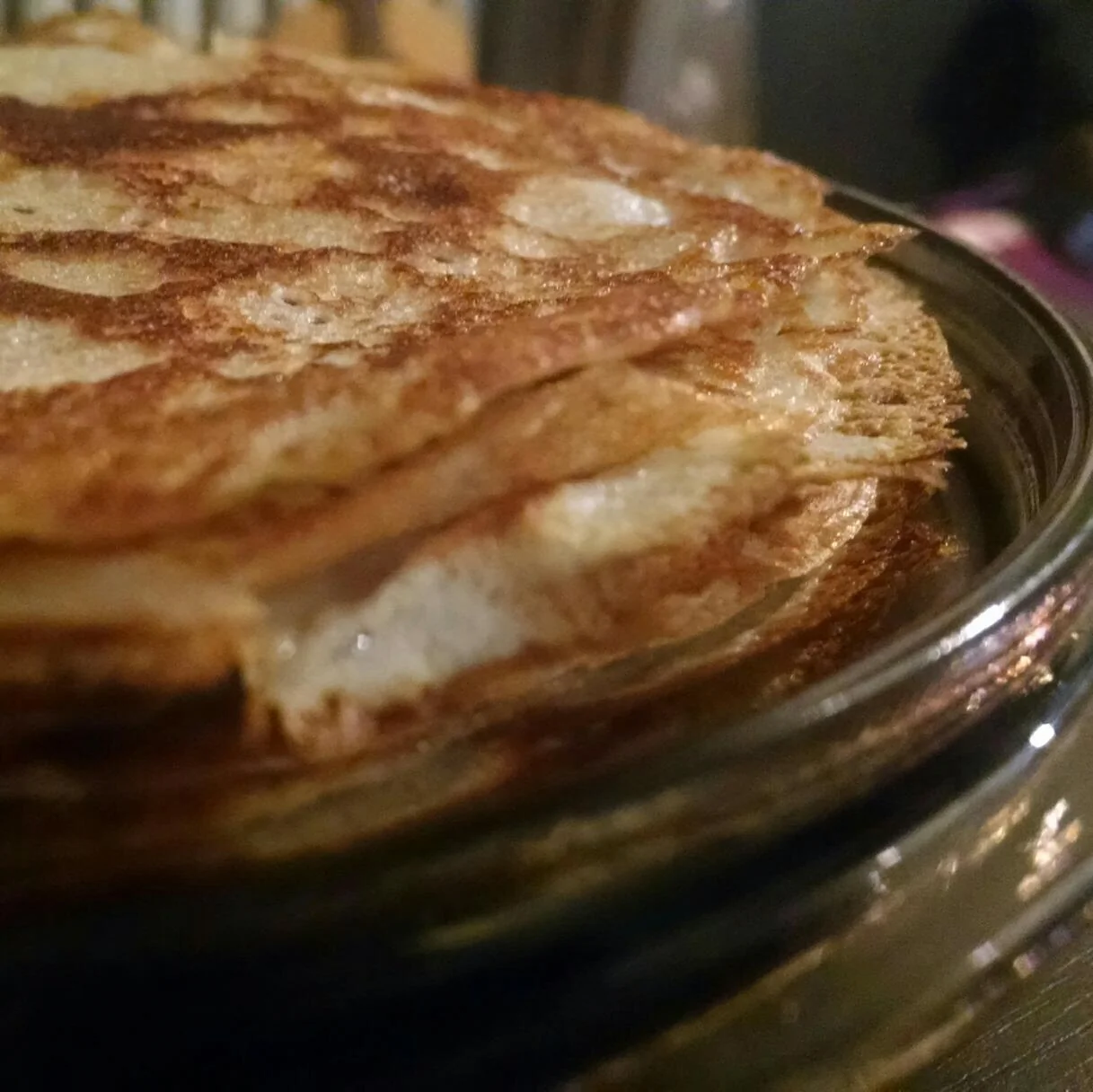 ШАГ 3 Печь на хорошо разогретой сковороде тонким слоем до золотистого цвета, смазать каждый маслом, подавать.