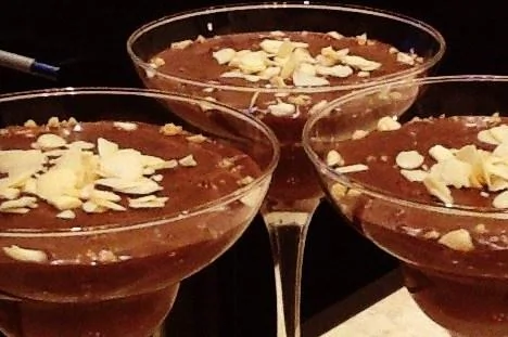 ШАГ 4 В прозрачные бокалы выложить слой горького шоколада, заполнив примерно два трети бокала, затем сверху посыпать орехами и выложить слой молочного шоколада. Поставить в холодильник на пару часов.
