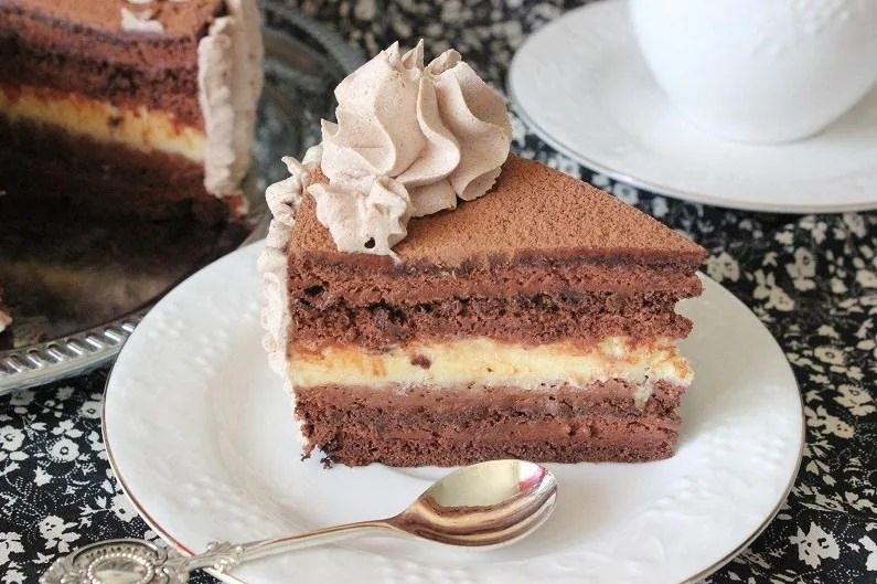 ШАГ 12 Взбить 200 г сливок с сахарной пудрой и 2 чайными ложками какао и украсила торт.