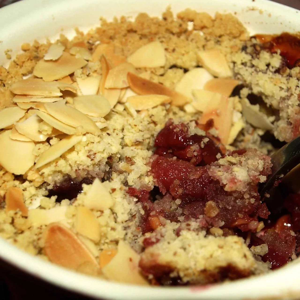 Яблочный крамбл с вишней и миндалем