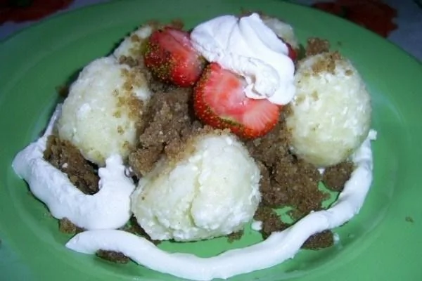 ШАГ 2 Из этой массы слепить небольшие шарики и сварить их в подсоленной воде. Как всплывут — готовы. Подавать со сметаной или сливовым вареньем. Или посыпать молотыми поджаренными сухарями с сахаром.