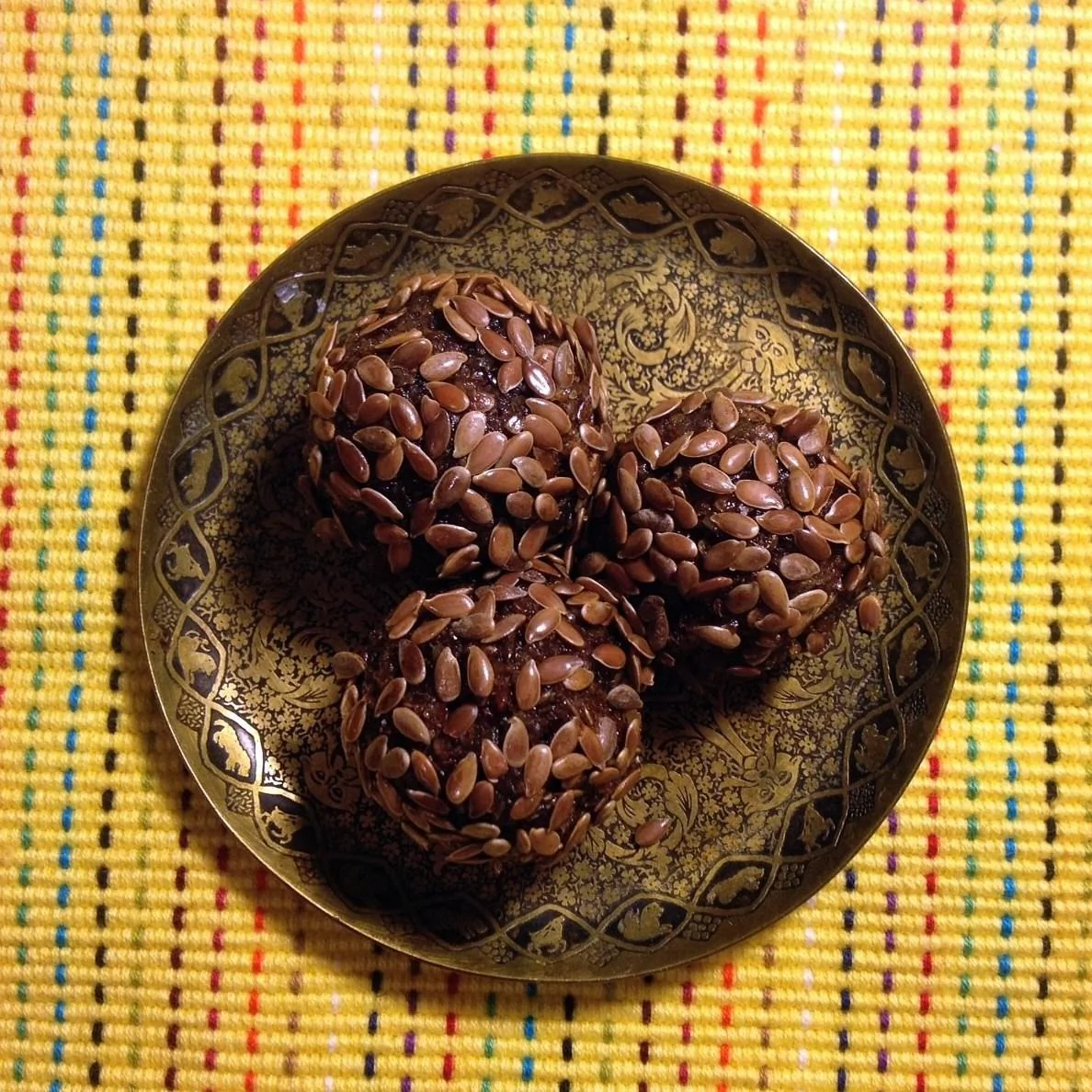 ШАГ 3 Из застывшей массы накатать шарики, либо придать любую другую излюбленную форму. Получившиеся порционные сладости обвалять или обсыпать цельными семечками льна для красоты.
