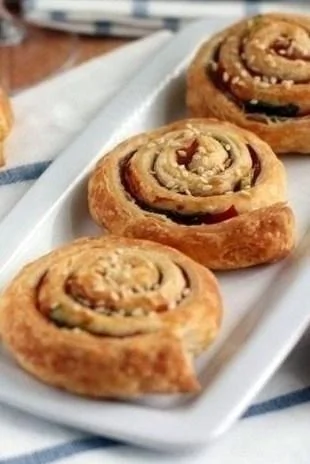 Слоеные булочки с ветчиной и зеленью