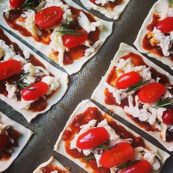 Ингредиенты для приготовления Слойки с козьим сыром, помидорами черри и розмарином: