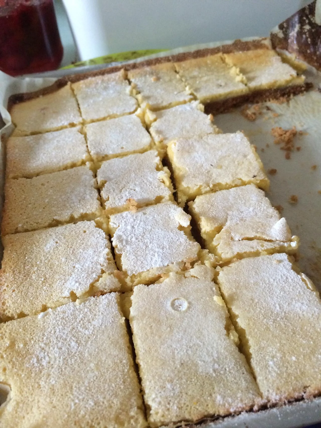 ШАГ 5 Остывший пирог разрезать на квадраты и посыпать сахарной пудрой.
