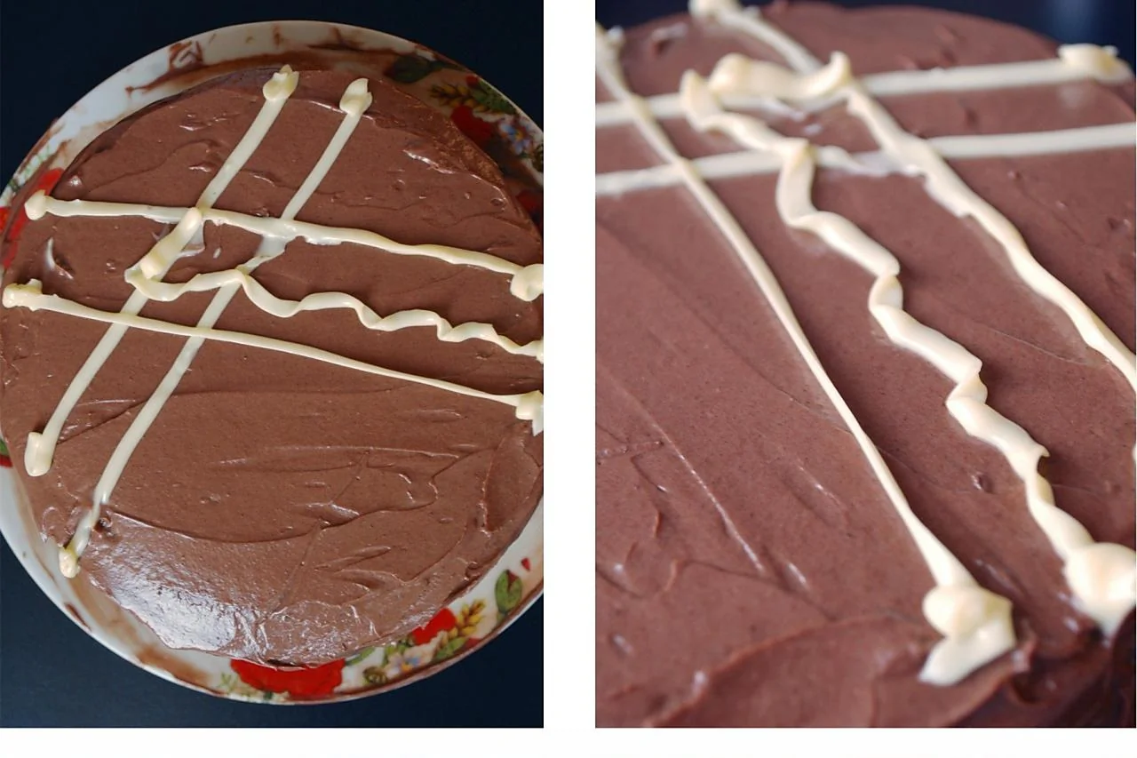 ШАГ 3 Сделать крем. Хорошо взбить масло, потом постепенно добавлять сгущенку и какао-порошок. Далее просто намазать коржи со всех сторон кремом.