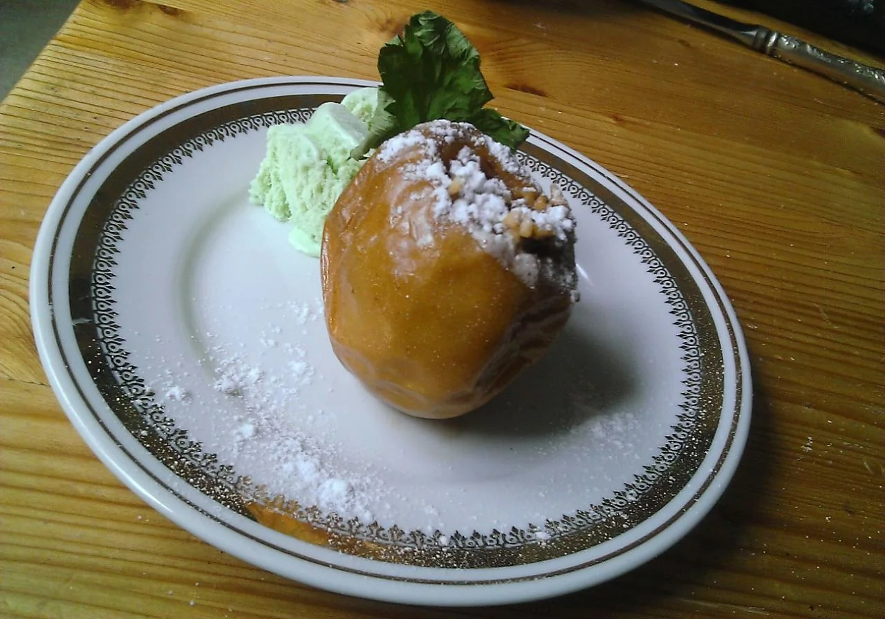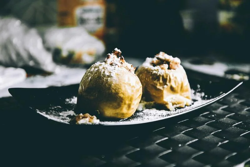 ШАГ 7 Выложите яблоко на тарелку и посыпьте через сито сахарной пудрой.