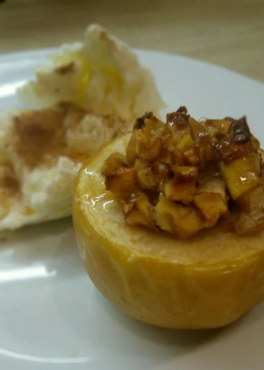 ШАГ 5 Положите эту смесь в яблоко и поставьте его в духовку или аэрогриль на 40 минут при 160–170 градусах.