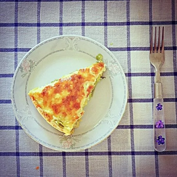 ШАГ 5 Теперь смазываем форму сливочным маслом и присыпаем мукой так, чтобы обмазанная маслом часть формы была совсем слегка припылена мукой. Затем выкладываем туда тесто, аккуратно растягивая и распределяя его нетолстым слоем по форме, делая невысокие бортики. После чего выкладываем туда лук и заливаем смесью из яиц, cливок и сыра равномерно.