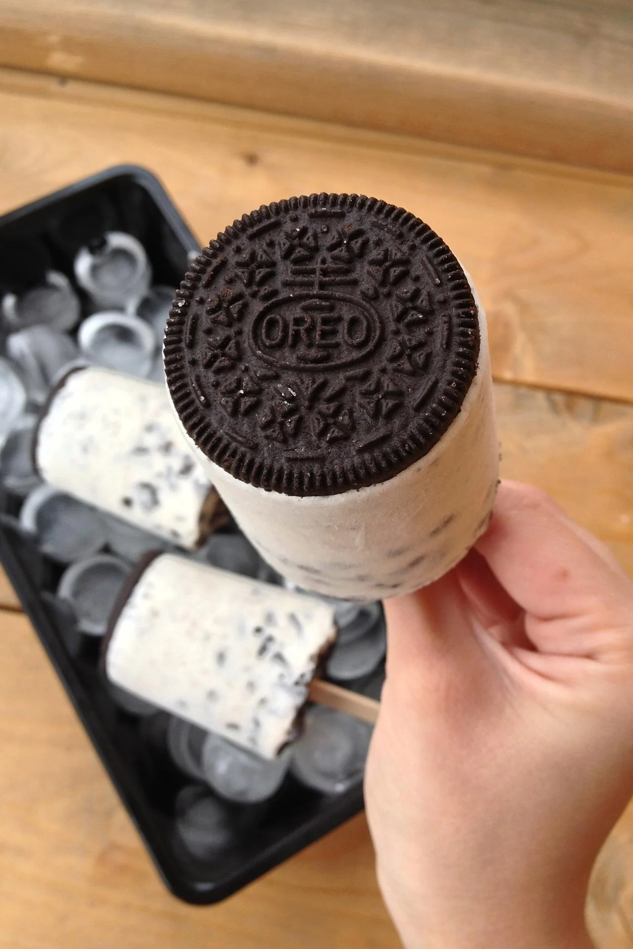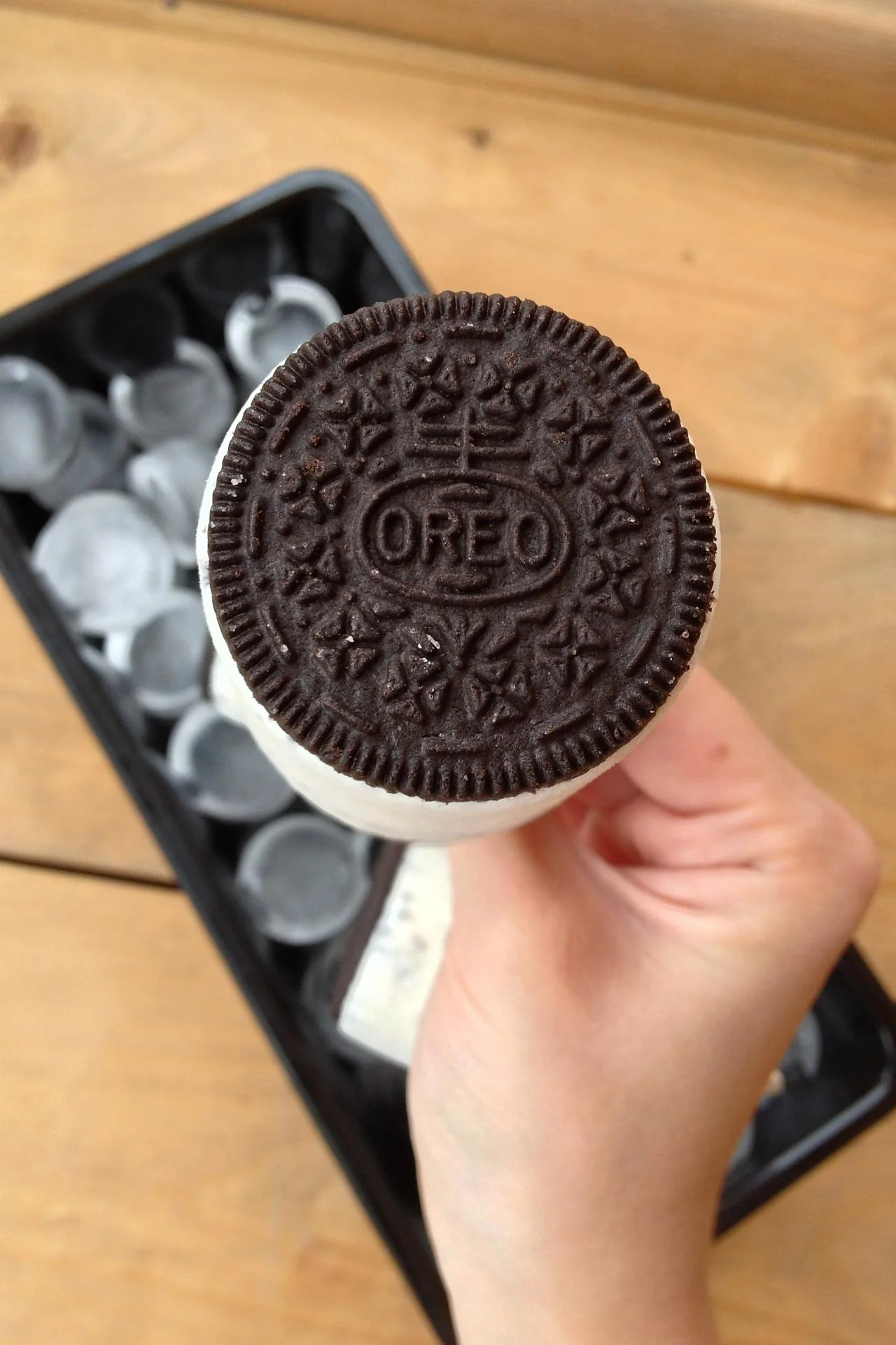 ШАГ 3 Извлеките мороженое из стаканчиков, украсьте верхушку цельным печеньем Oreo и подавайте.