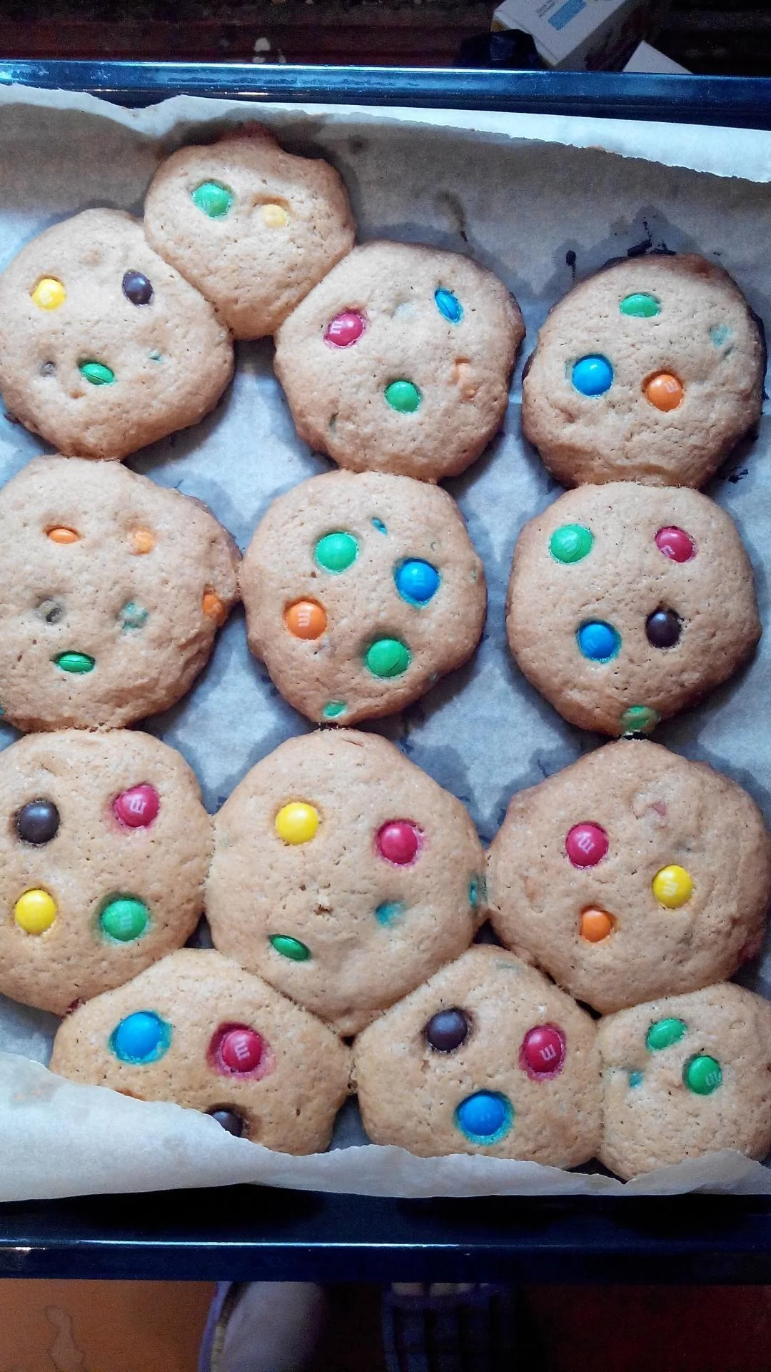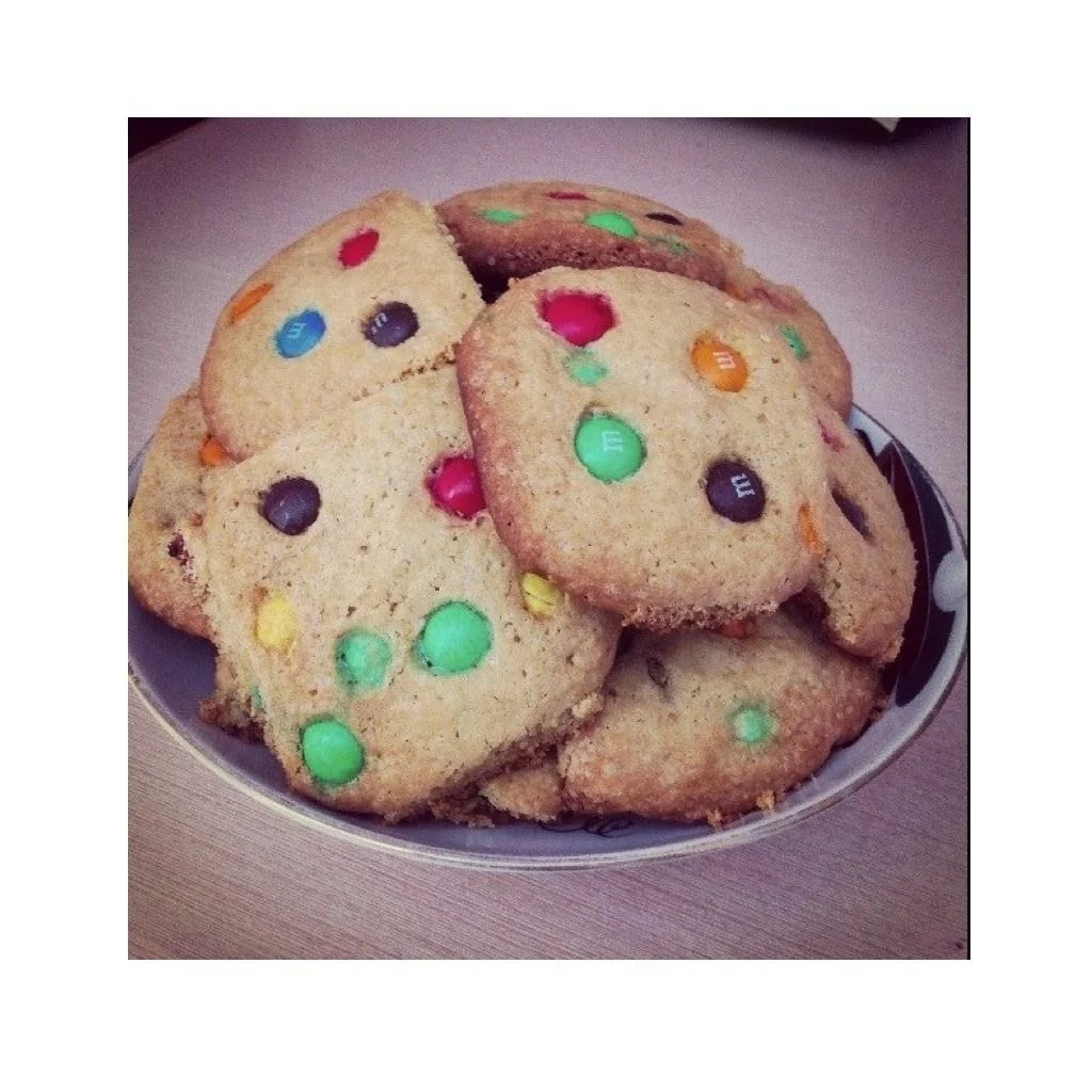 ШАГ 1 Смешать в миске размягченное масло и сахар до получения мягкой однородной массы. Добавить ванилин, перемешать. Добавить яйца, перемешать. Добавить просеянную муку вместе с содой и солью. Хорошо перемешать массу. Добавить половину m&m«s, вторую половину оставить для украшения печенья.