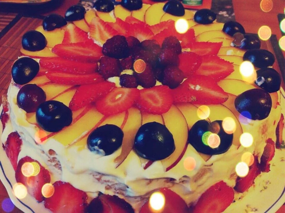 Ингредиенты для приготовления Фруктовый торт со взбитыми сливками: