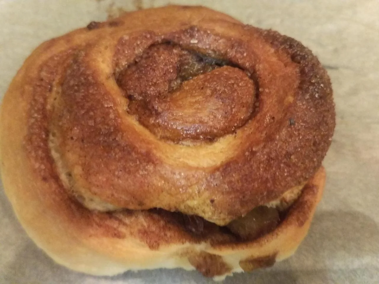 ШАГ 9 Каждую раскатать толщиной 3–4 мм, посыпать сахаром с корицей. Свернуть рулет, края защипнуть.