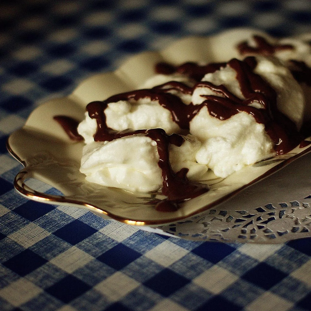 Ингредиенты для приготовления Белковые снежки с шоколадным соусом:
