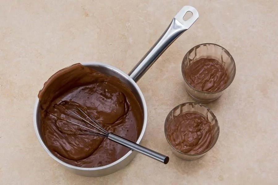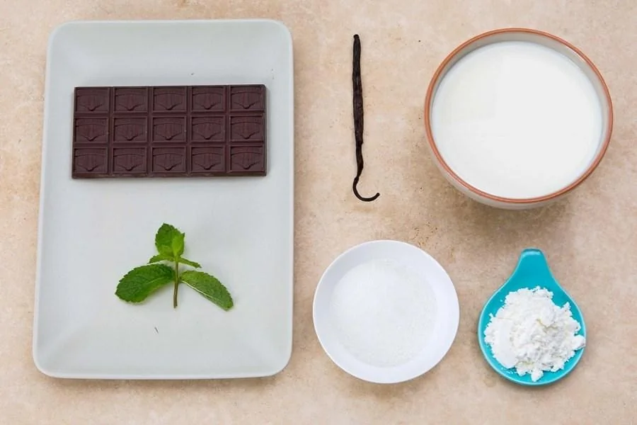 Молоко Горький шоколад Кукурузный крахмал Сахар Ванильный стручок Свежая мята Выпечка и десерты Русская кухня Кисель
