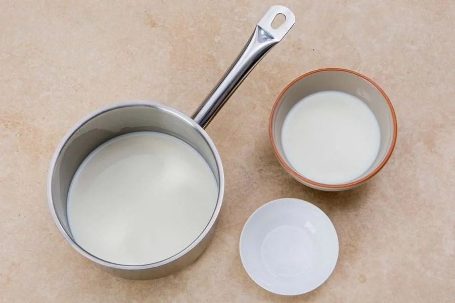 ШАГ 1 Влейте 2/3 молока в сотейник, добавьте сахар.