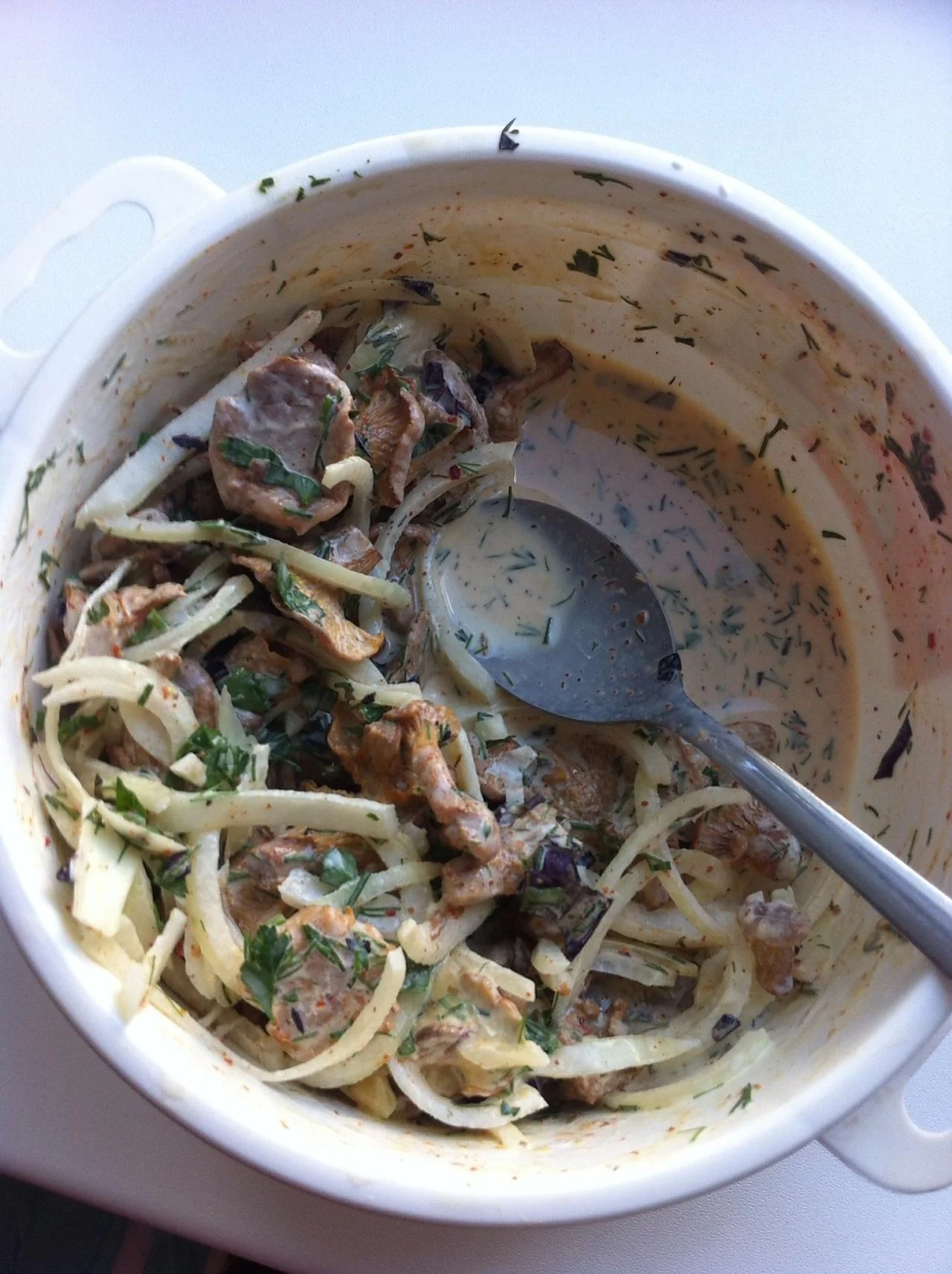 ШАГ 1 Взять 400 грамм отваренных лисичек, промыть их перед употреблением.
